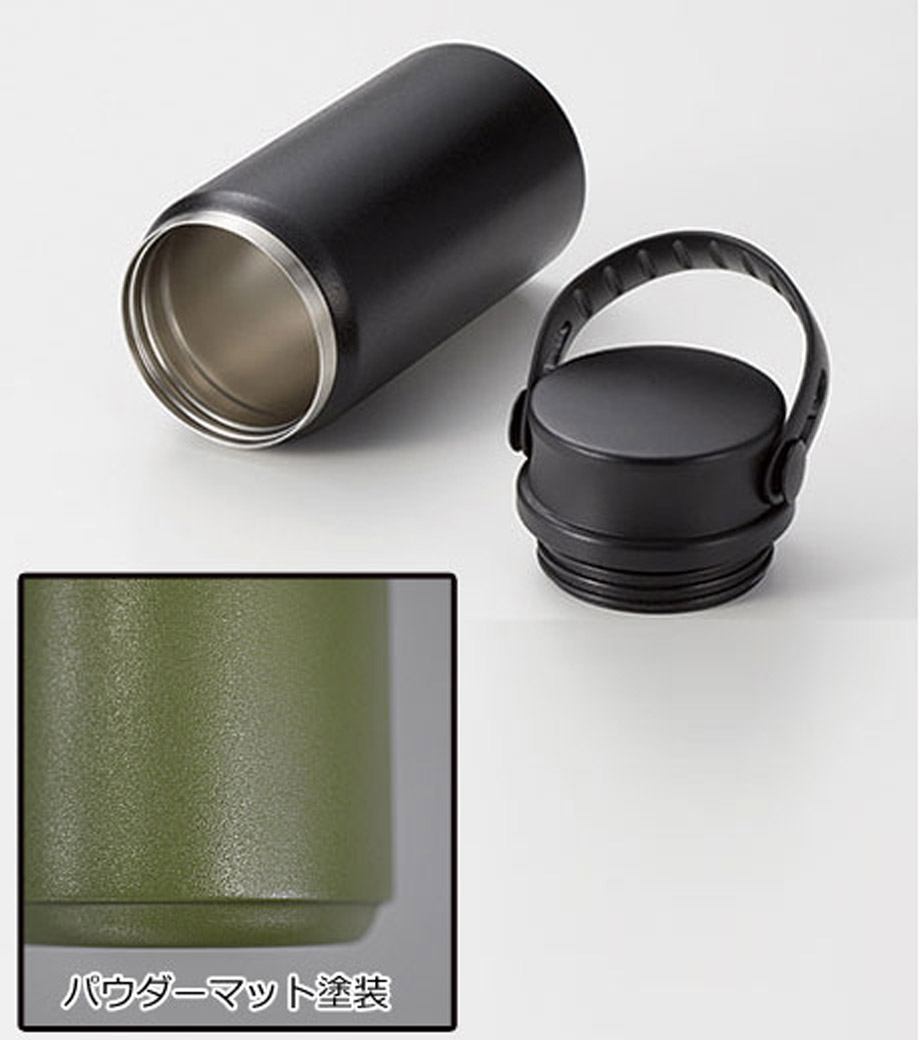 Zalattoサーモハンドルスタイルボトル 500mlは、表面がパウダーコーティングしてあるので滑りにくく、濡れた手でもしっかり持つことができる真空二重構造のボトルです。