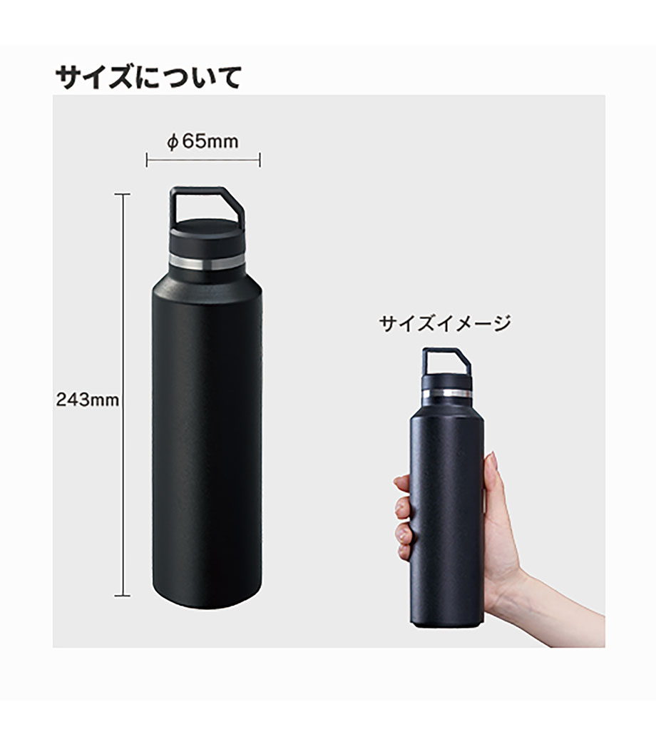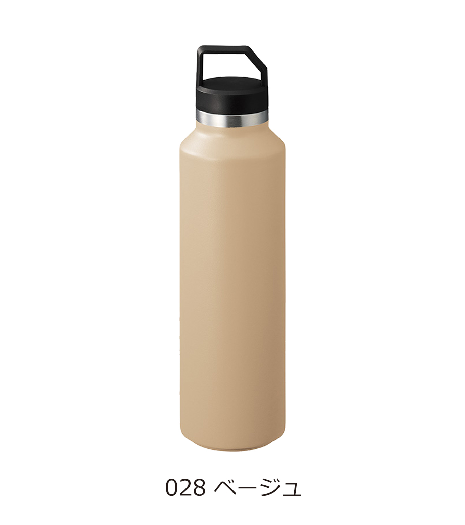 スポーツやアウトドアに最適な保温・保冷できるステンレスボトルです。本体は滑りにくいマットコーティング仕様。携帯しやすい持ち手ハンドル付きです。直飲みできるスクリュー式のフタ栓で、ごくごく飲める!容量約600mlで携帯しやすいサイズです。