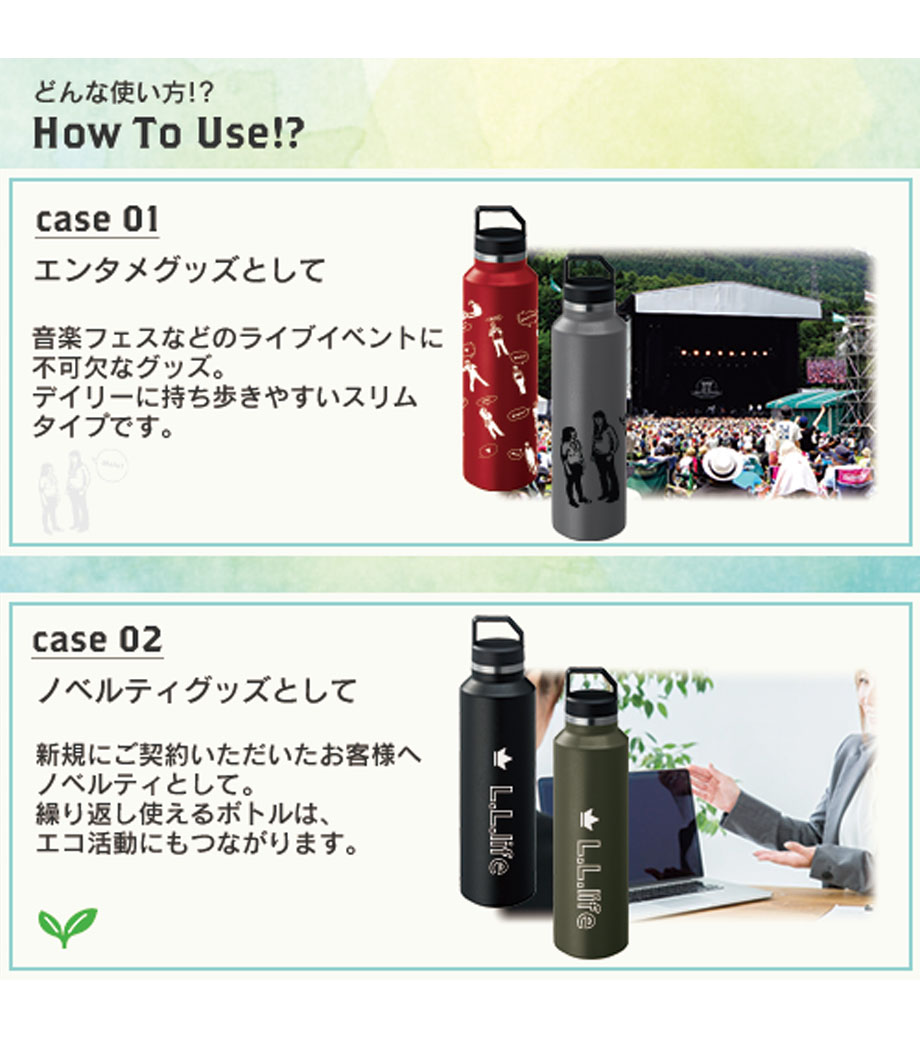 オリジナルの名入れプリントができる水筒・魔法瓶 持ち手・肩掛け付を取り揃えました。小ロットからご注文可能です。年代問わず喜ばれるので、ノベルティ・記念品にピッタリです。