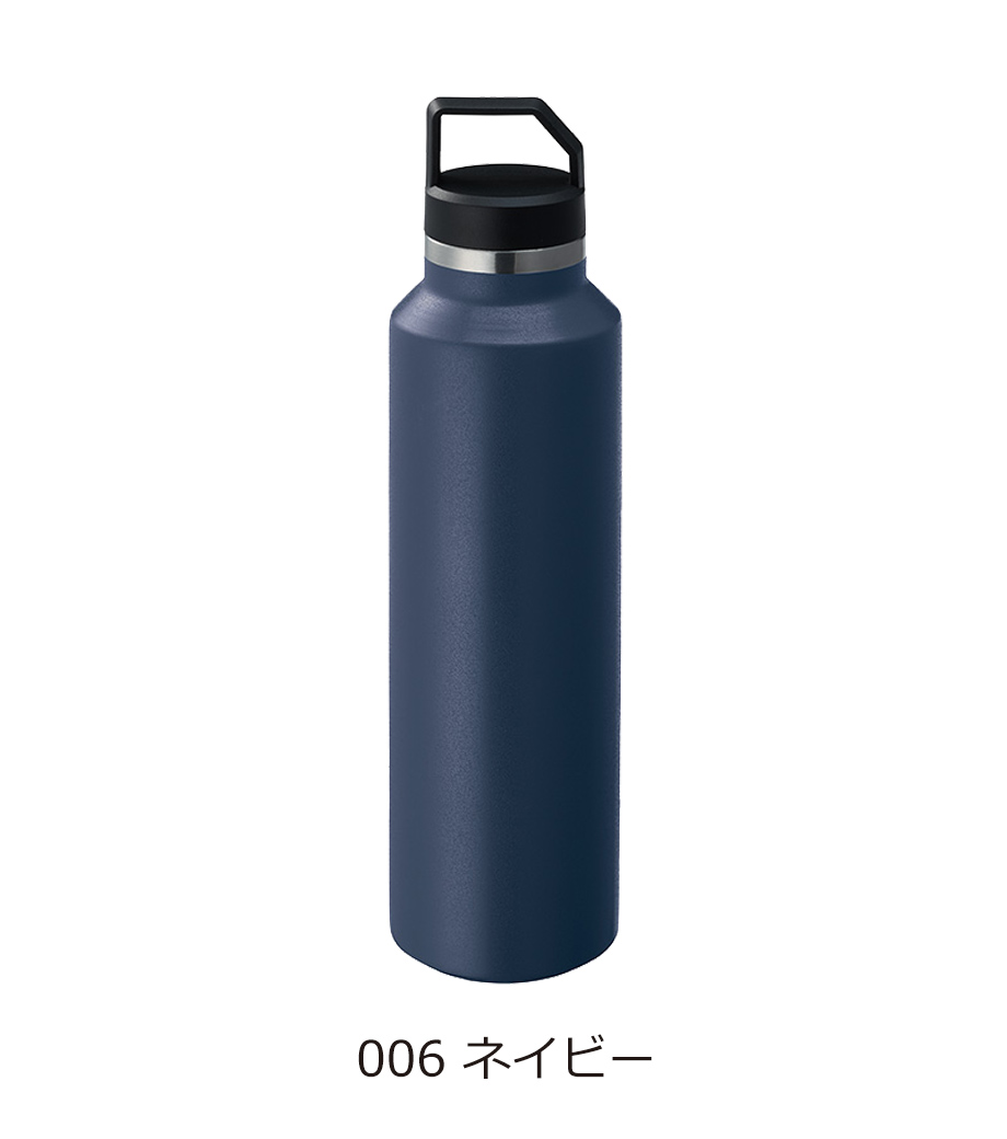 持ち運びに便利なハンドル付きステンレスサーモボトル。容量約520mlでアウトドアやスポーツ、レジャーに最適。人気のカーキ・ネイビーを含むカラー展開で、企業イメージやブランドに合わせたグッズ制作におすすめです。