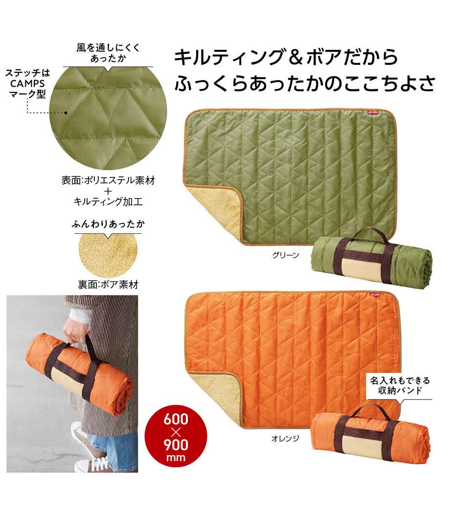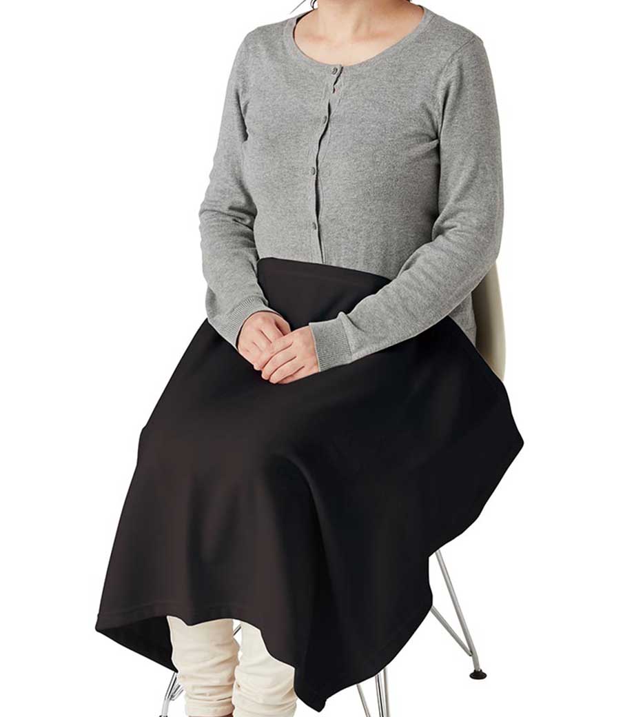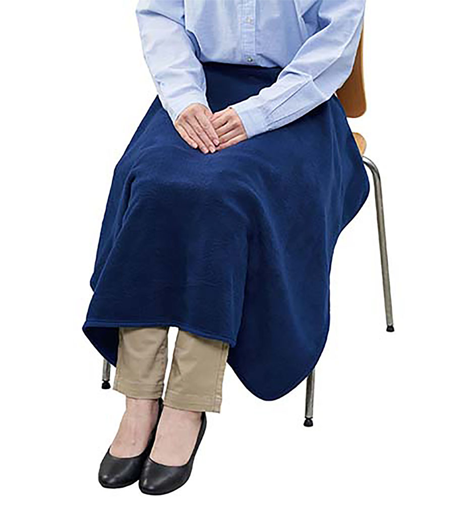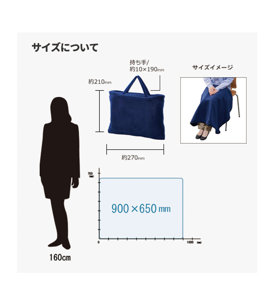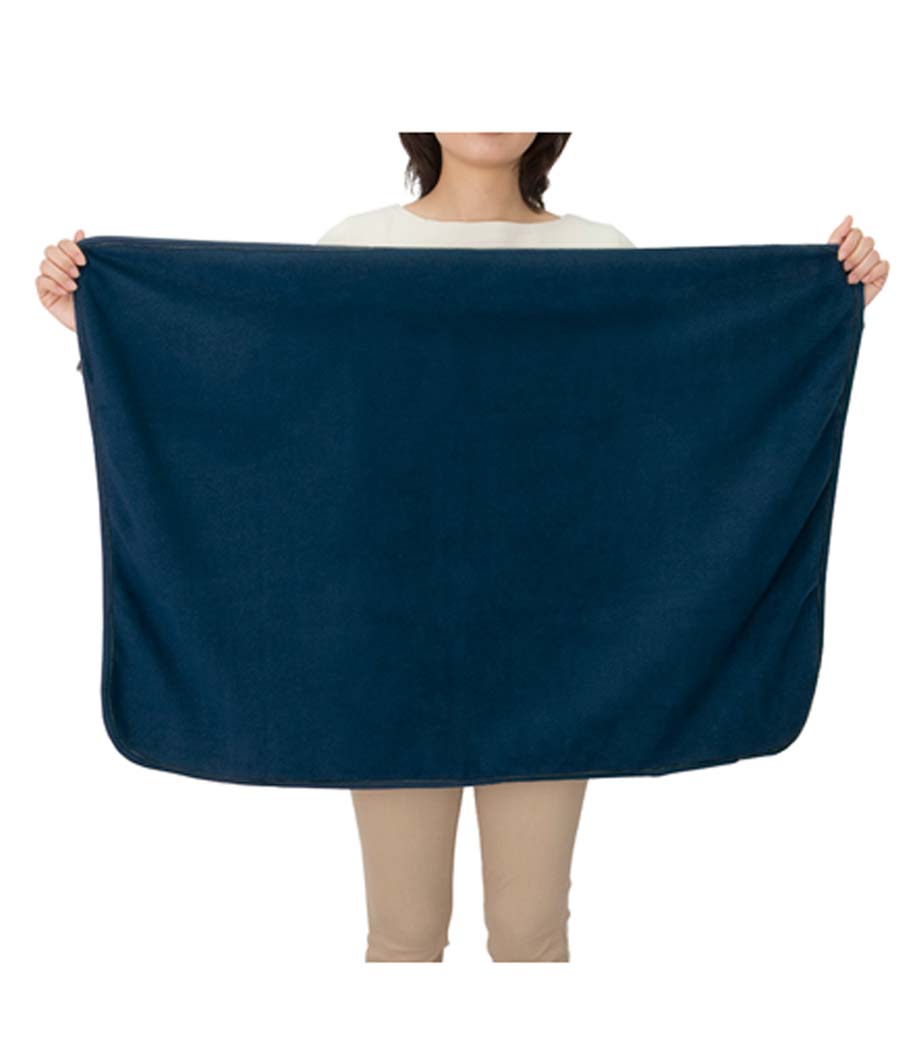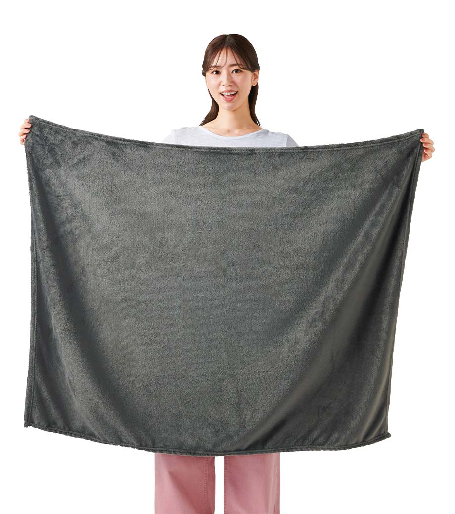 縦にすると、お腹から足元まですっぽり覆えるサイズです。お家でのリラックスタイムやオフィスでのデスクワーク、屋外でのアウトドアシーンなど、冬場の寒さ対策に一枚あると便利です。