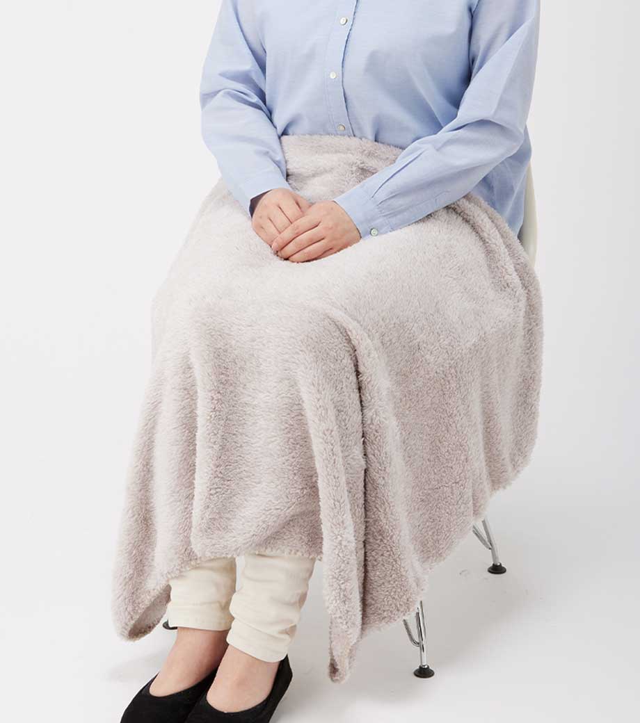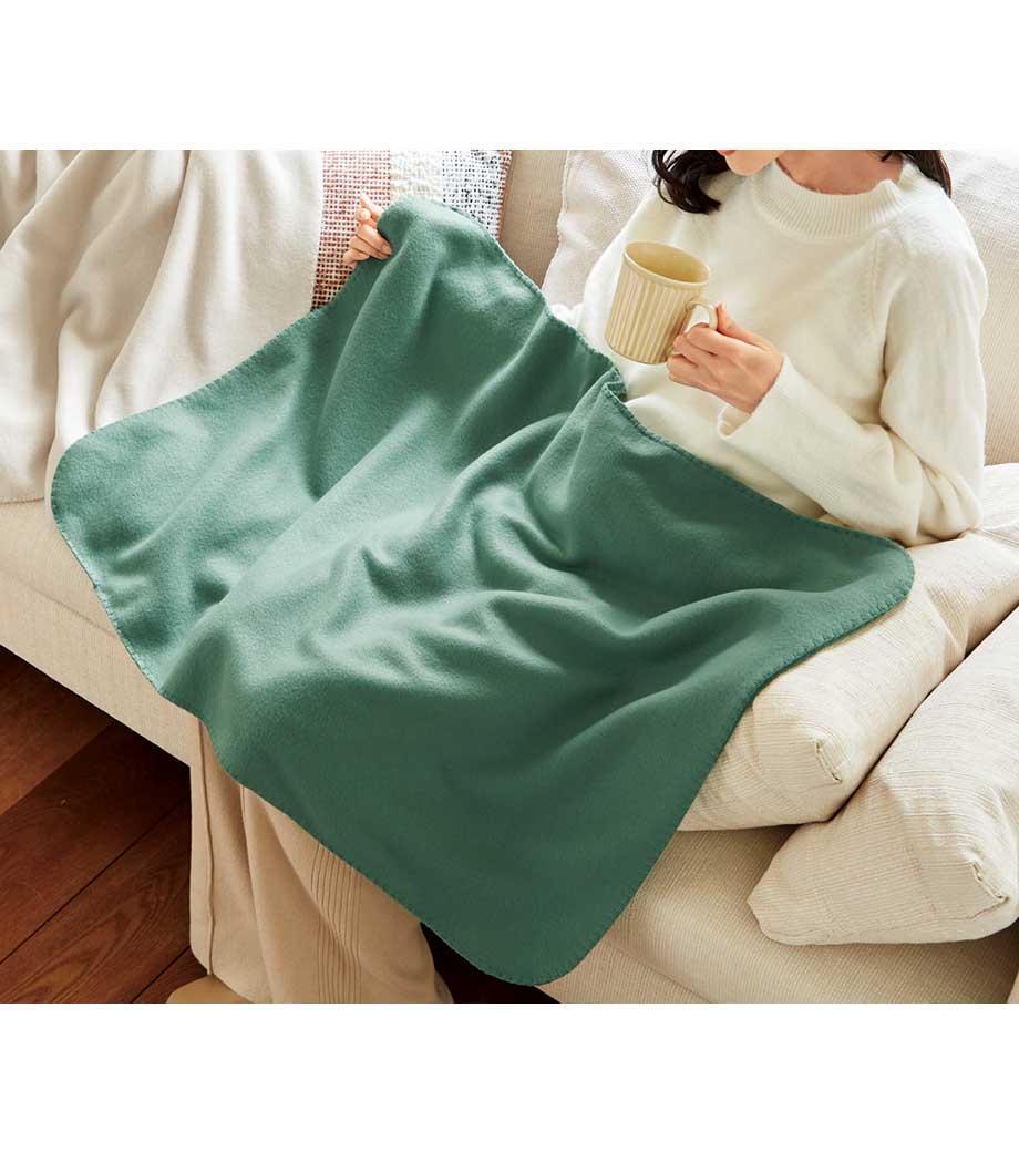 ソフトタッチブランケット(S)は触り心地の良いひざ掛けサイズのブランケット。縦向きにすると、お腹からひざ下まで暖められるコンパクトなサイズです。