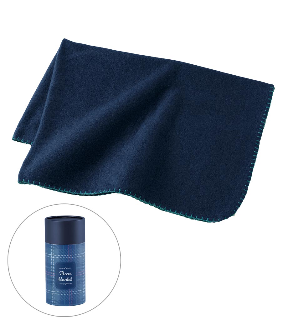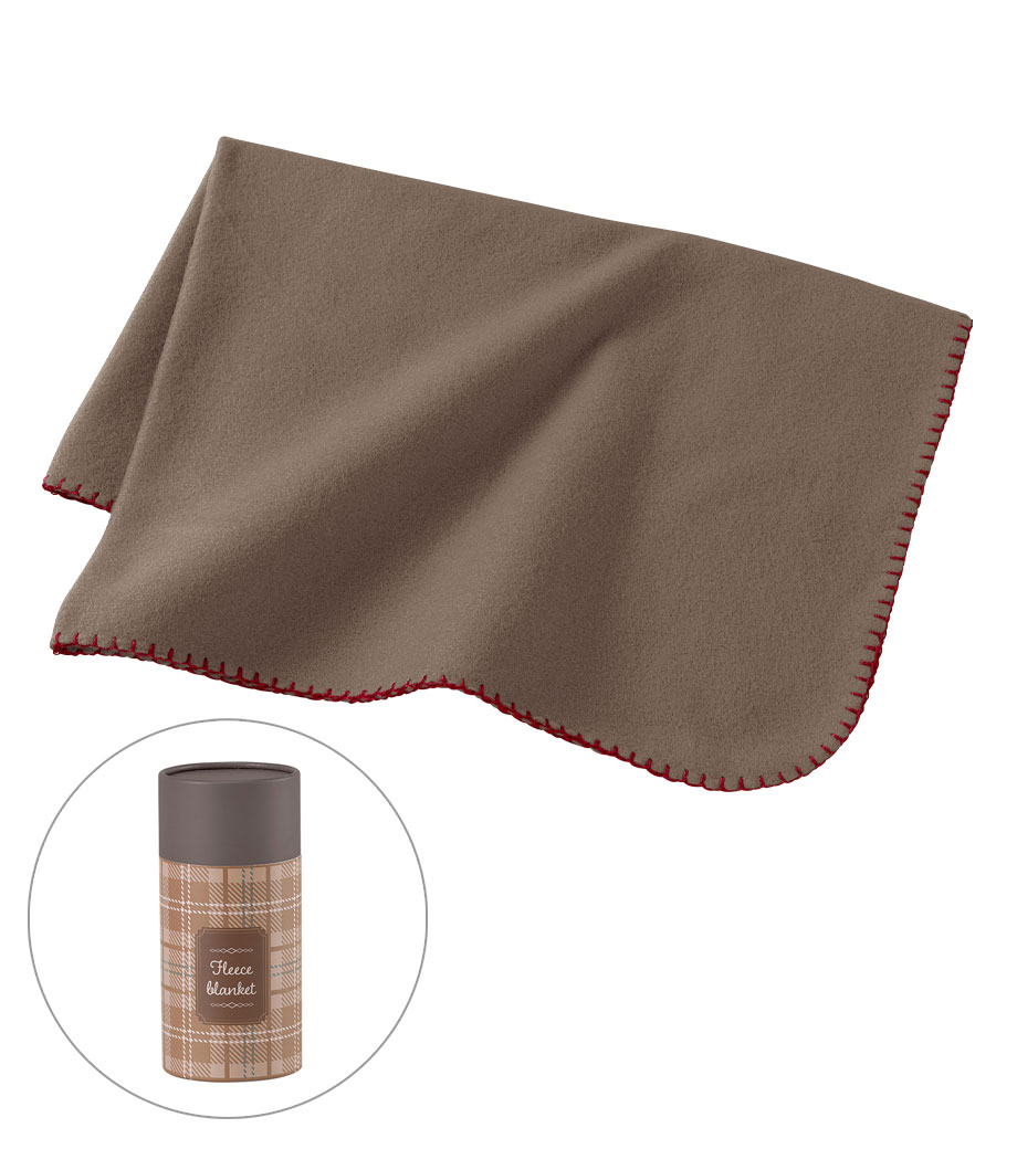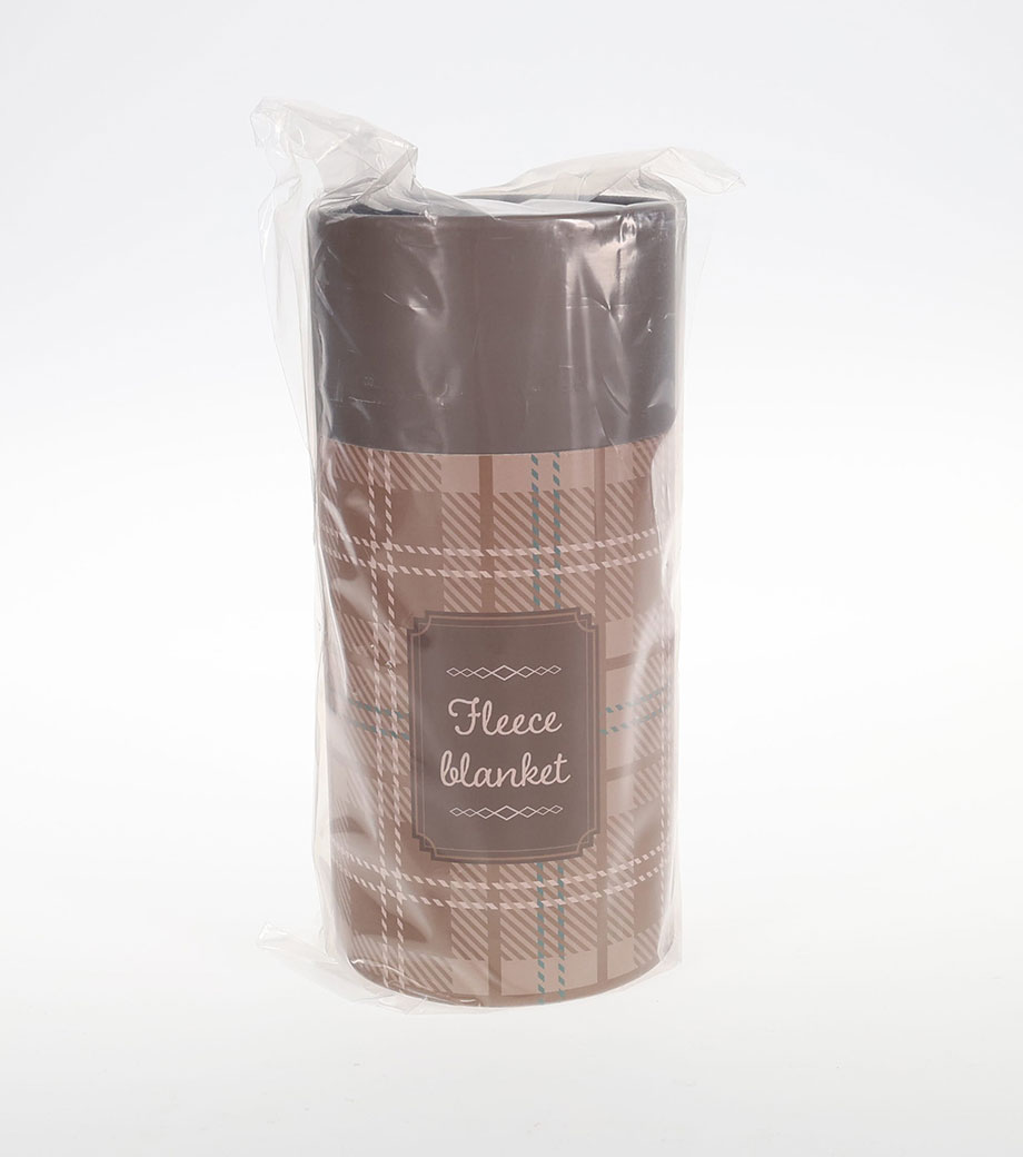 軽くてあたたかいフリースブランケットです。周りにぐるっと入ったステッチがアクセント。オシャレなチェック柄のボトル入りで、ボトルは収納ケースとして使用できます。