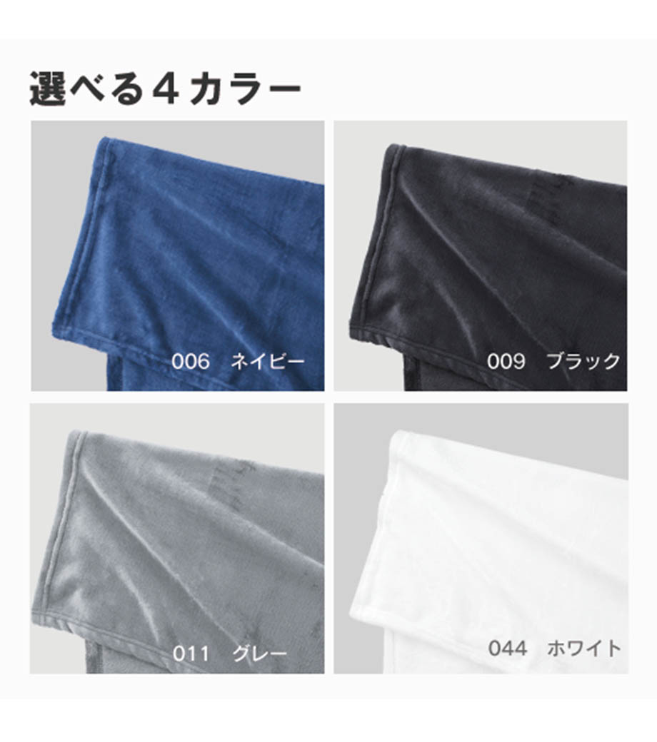 映画館やカフェでの貸し出し用ブランケットとしても通年人気のアイテムで、記念品やアパレルブランドのノベルティ製作にもピッタリ。ベーシックなカラー4色の中からお選びいただけます。
