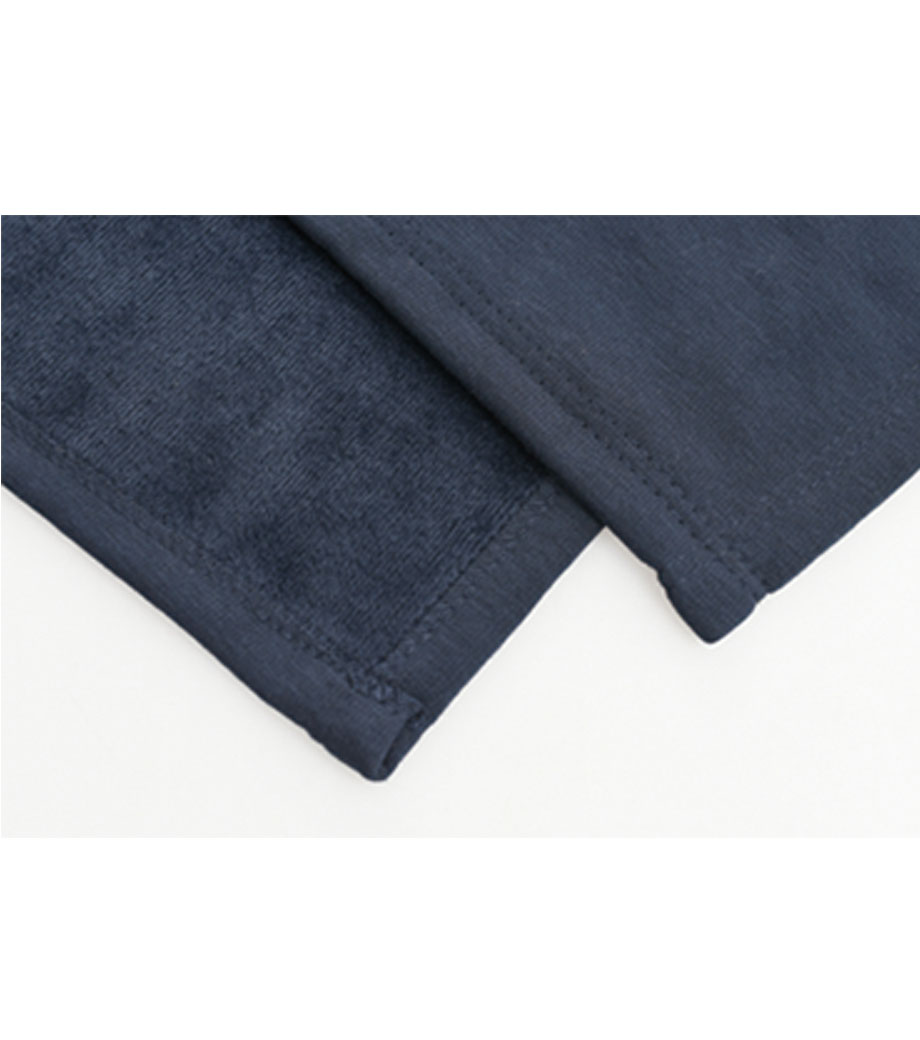 厚手スムースフリースミニブランケットは、表面はスウェットのようななめらかなスムース生地で、体に当たる裏面は暖かいファーのダブルフェイス生地になっています。
