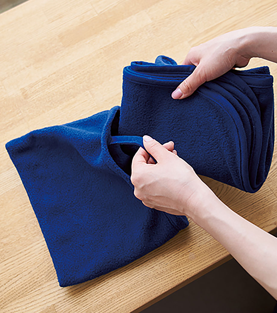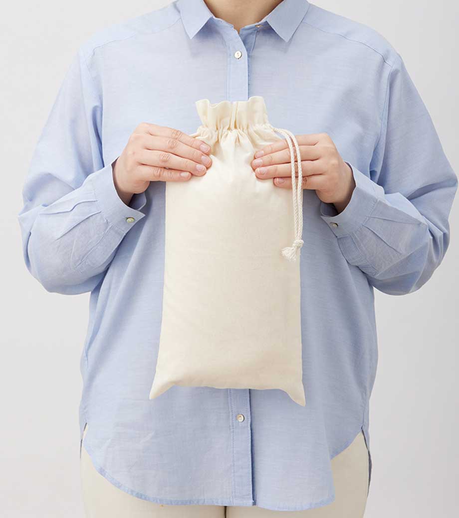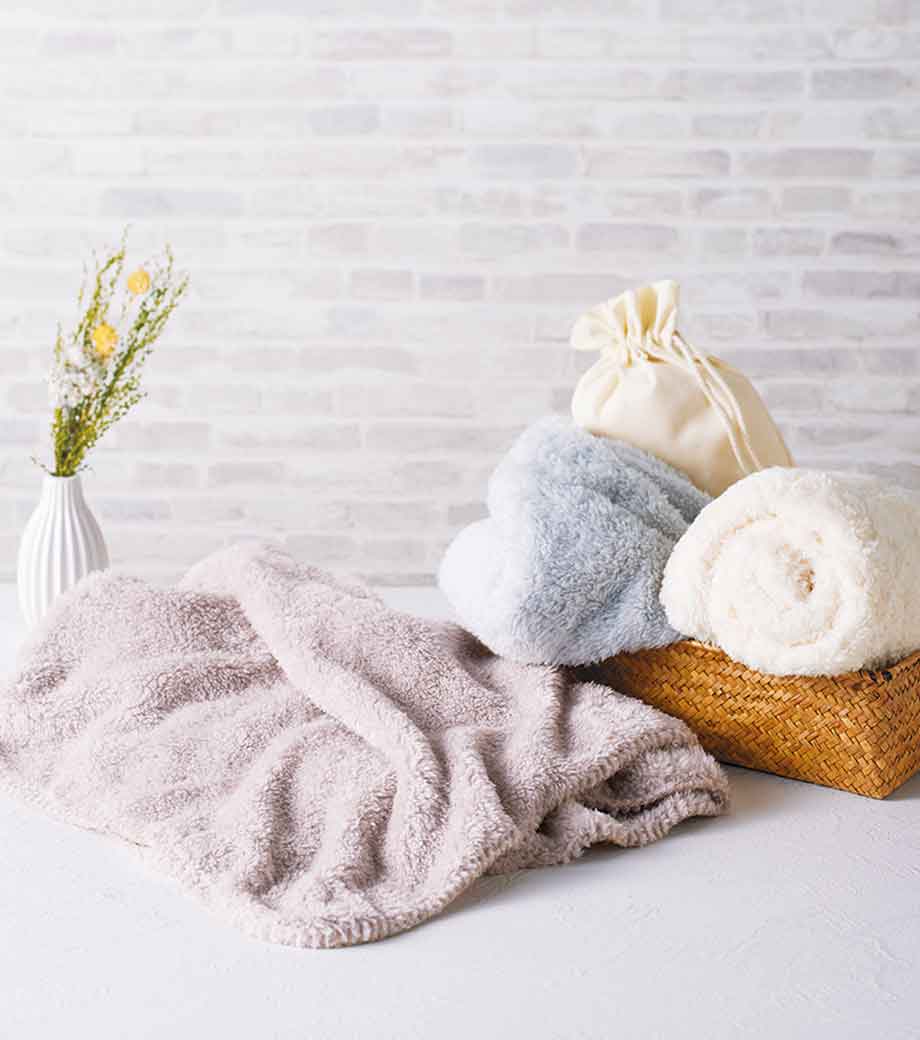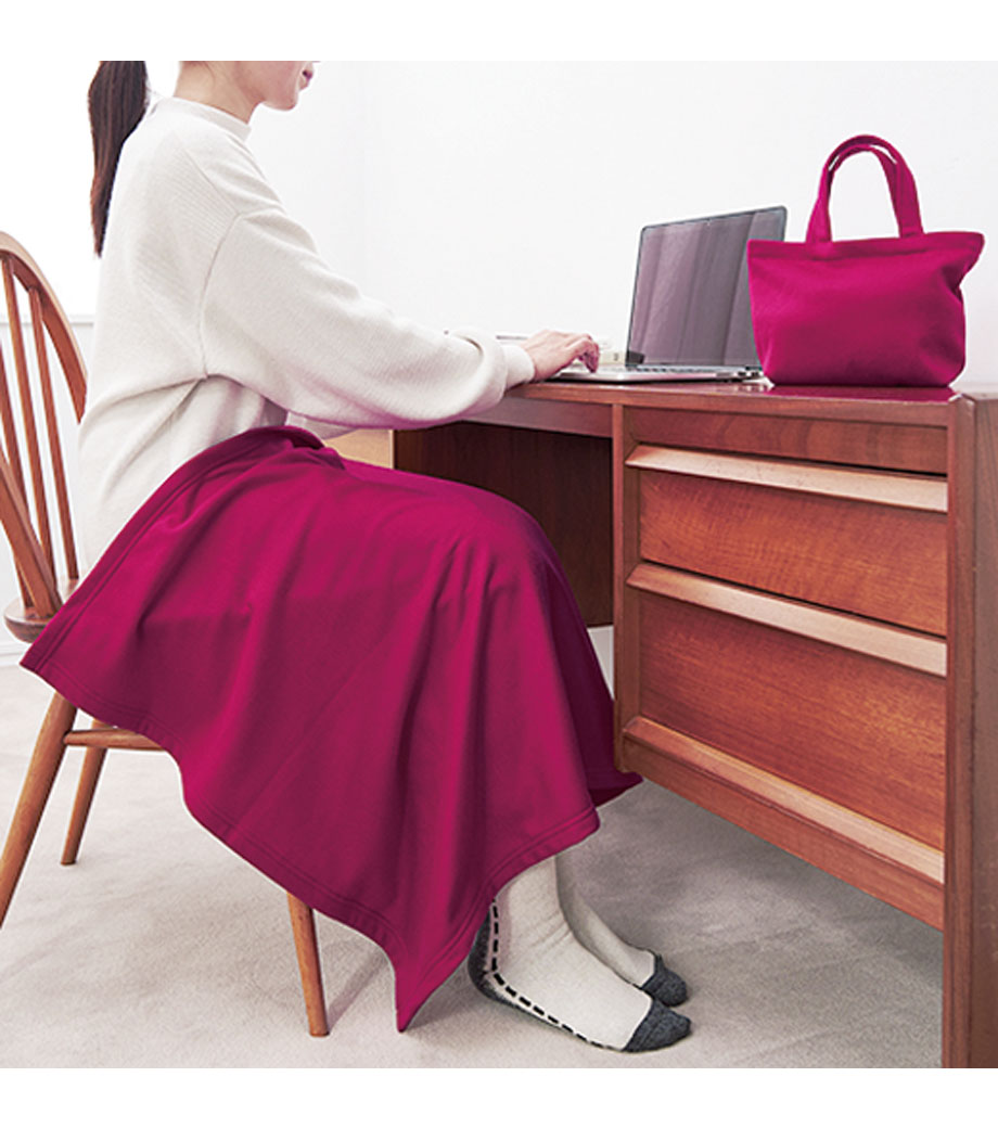 温め効果抜群で、家やオフィスに、どこにでも持ち歩きたくなるブランケットです。巾着に入れれば、仮眠にぴったりなミニ枕にもなります。