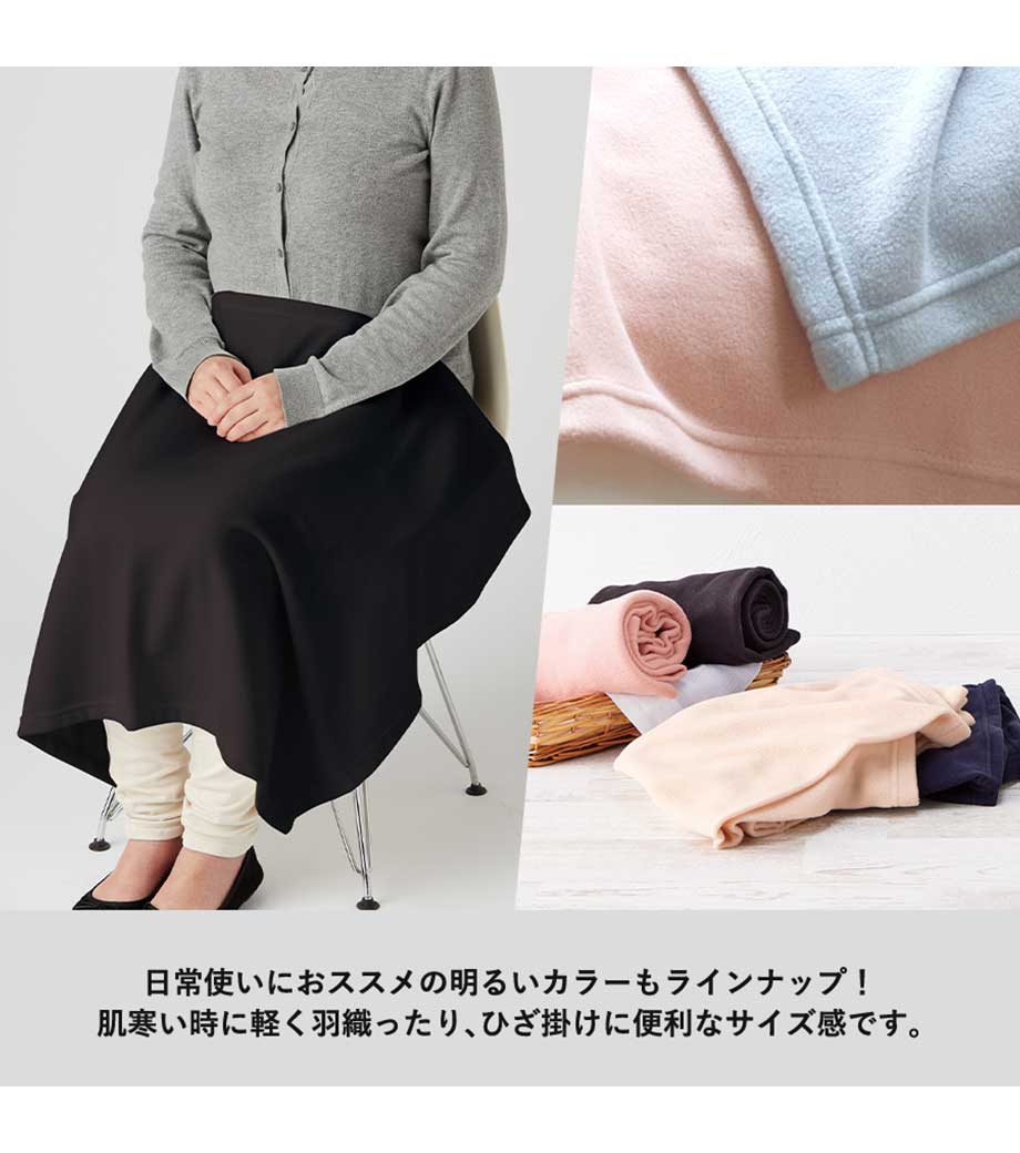 お家やオフィスでの寒さ対策に気軽に使える一枚です。冬の寒い時期はもちろん、冷えの気になる映画館や屋外のカフェなどさまざまなシーンで活躍します。とても軽いのでスポーツ観戦やアウトドアなど外への持ち歩きにも◎。