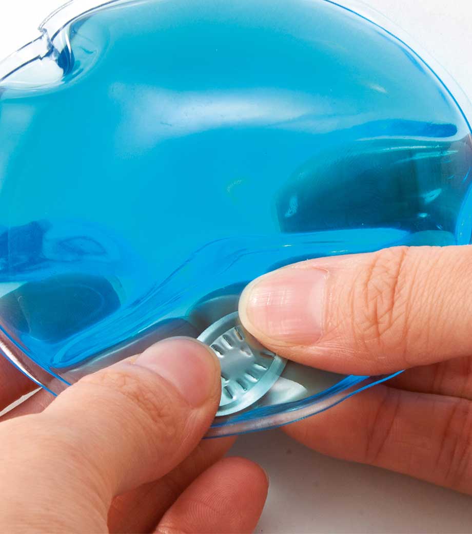 リサイクルエコカイロは繰り返し使えて環境にやさしいカイロ。中の金属片を数回パチパチ押し曲げると、ジェルが化学反応を起こし瞬時に温かくなります。暖かさは約30分持続します。使用後は熱湯で10分ほど煮沸し、冷水で冷やせば元通り。何度も再利用できます。